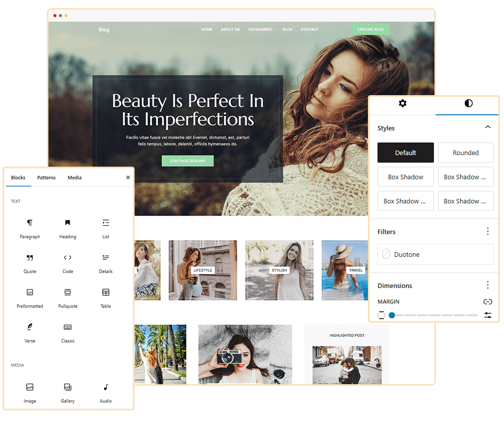 Blockskit Blog is a modern and versatile WordPress theme created especially to build versatile sites such as Blogging, News, Insights, lifestyle, bloggers, writers, content creator and all other blog websites without a single line of coding. It offers full-site-editing, allowing easy customization of all aspects of your site. With multiple templates, patterns, and style variations, it’s suitable for different aesthetics.